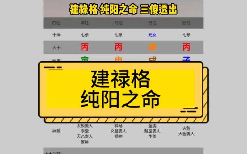 出生在不同月份的日干对应建禄的情况,如日干甲生在寅月即为建禄格。在八字解释中,建禄格的成立条件涉及日干的强弱与官星、印星、财星等因素的互动。